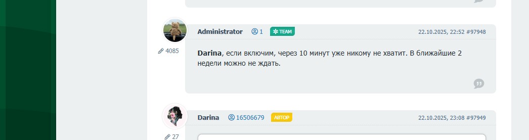 Darina, если включим, через 10 минут уже никому не хватит. В ближайшие 2 недели можно не ждать.